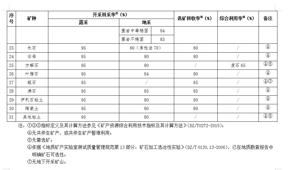 含鉀巖石等礦產資源合理開發利用“三率”最低指標要求(試行).docx
