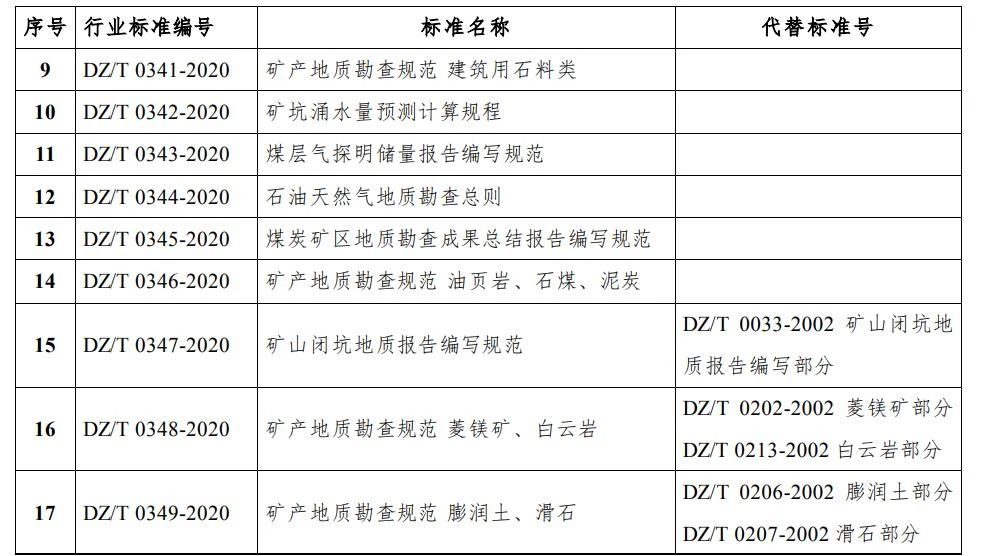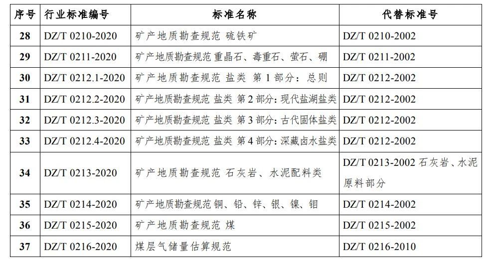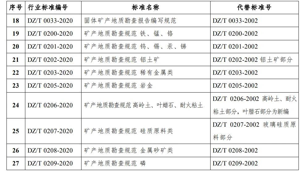 自然資源部發布《固體礦產勘查概略研究規范》等46項行業標準的公告